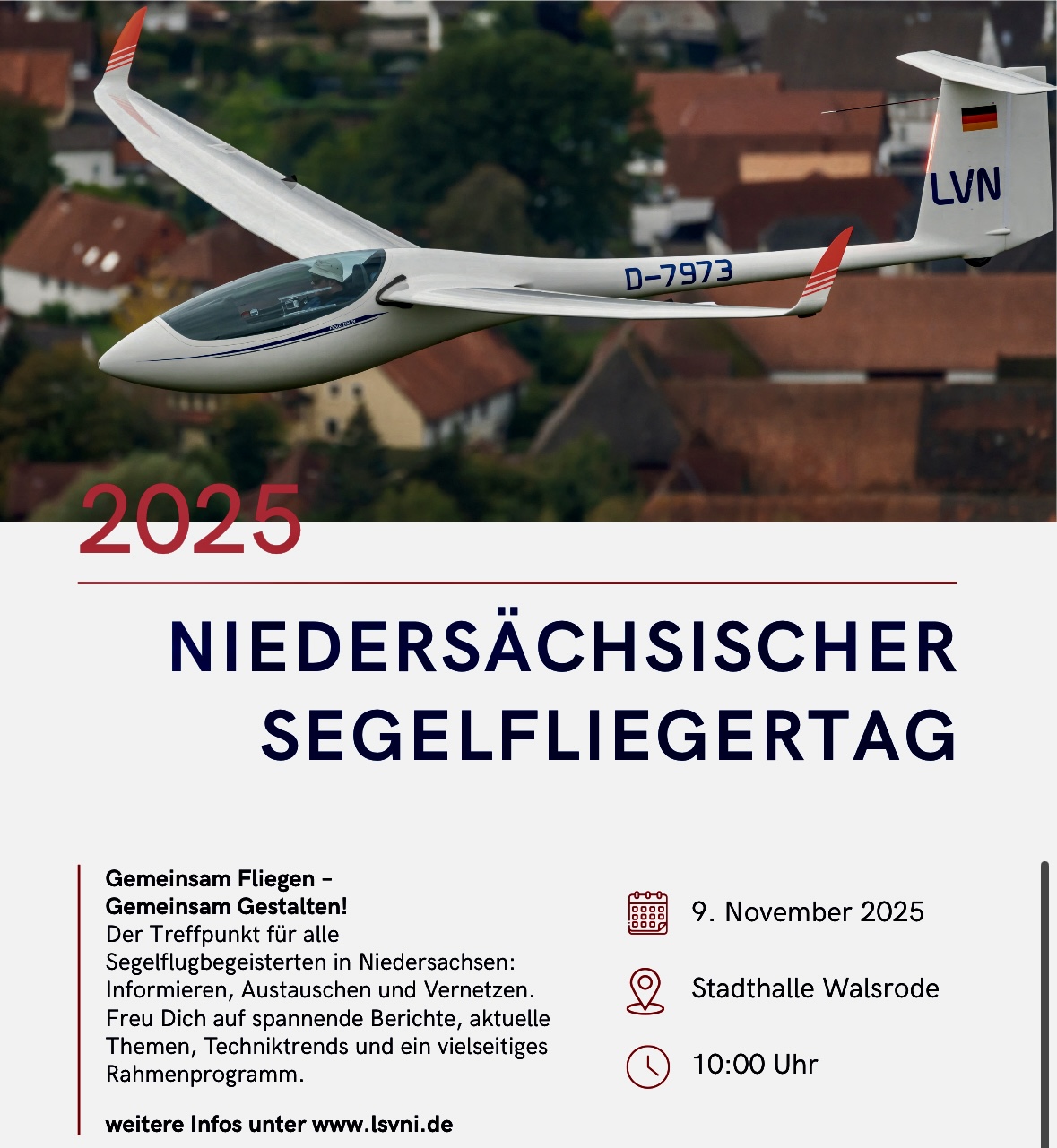 Posted on 4. Oktober 2025 by CS Wir sind dabei Am 09. November besuchen wir den Niedersächsischen Segelfliegertag 2025 in Walsrode.